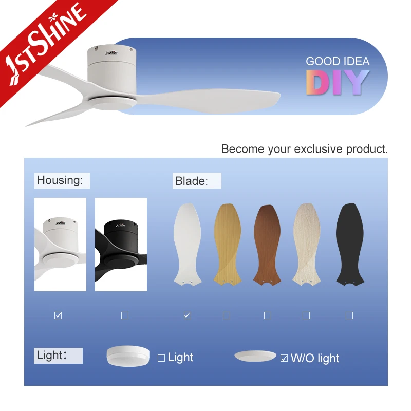 1stshine Ceiling Fan Low Profile 3 White ABS Blades Space Saving White Ceiling Fan No Light